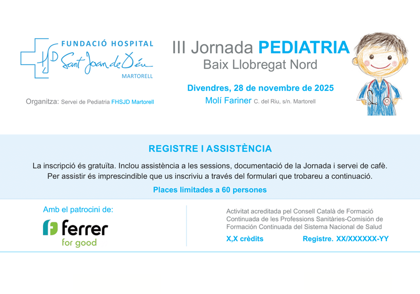 El pròxim divendres 28 de novembre us convidem a participar en la III Jornada de Pediatria Baix Llobregat Nord, organitzada per la Fundació Hospital Sant Joan de Déu de Martorell (FHSJDM).