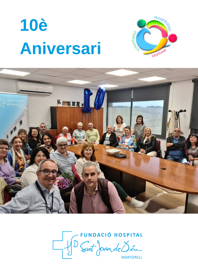 Aquest dissabte, 17 de maig, la Fundació Hospital Sant Joan de Déu de Martorell (FHSJDM) ha celebrat un emotiu acte d’homenatge per reconèixer la tasca del seu equip de voluntariat, coincidint amb el desè aniversari del programa, iniciat l’any 2014.