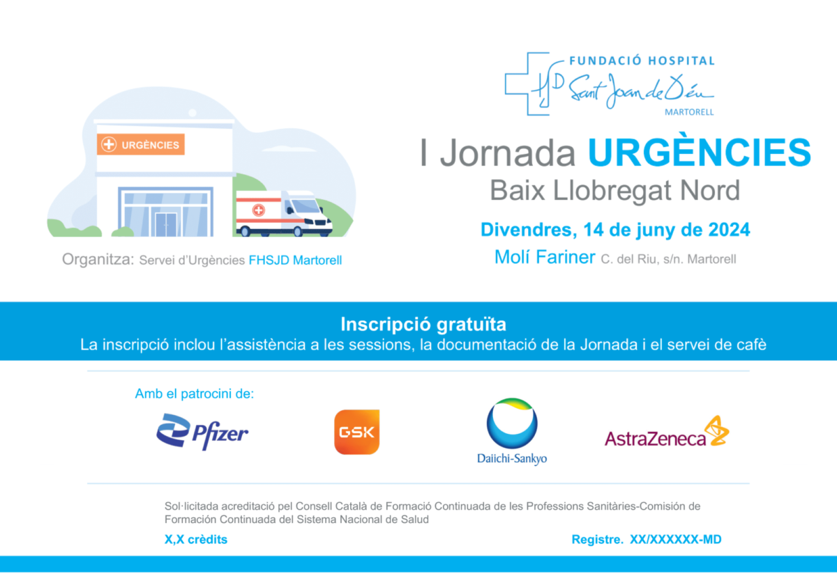 El pròxim divendres, 14 de juny se celebra la I Jornada Urgències Baix Llobregat Nord organitzada per la Fundació Hospital Sant Joan de Déu de Martorell. La sessió tindrà lloc de 8.30 h a 14.15 h, al Molí Fariner de Martorell, situat al carrer del Riu s/n.